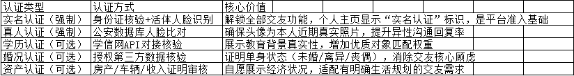 诚信认证是提升个人档案可信度、提高交友成功率的核心保障,平台通过“基础强制认证+可选增值认证”的双重机制,全方位核验信息真实性。以下为详细认证指引与常见问题解答: